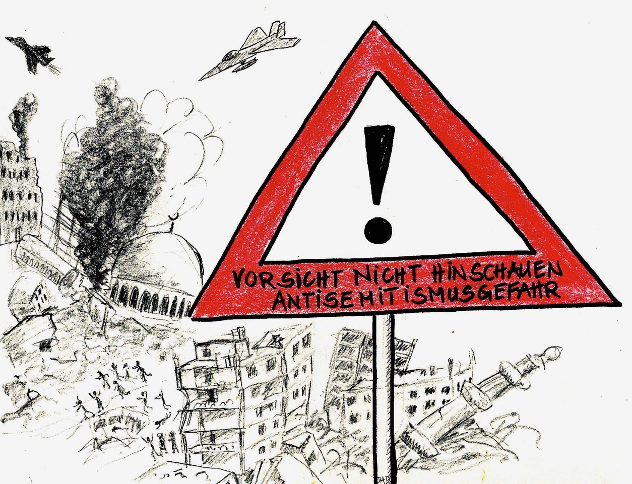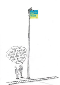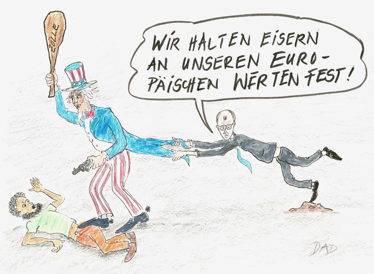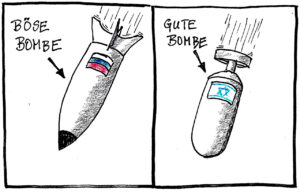 Nachfolgende Karikaturen von Felix Winter können im Kontext friedenspolitischer Beiträge frei verwendet werden. Wir bitten aber um einen entsprechenden Hinweis per Mail an den Bundesausschuss Friedensratschlag.